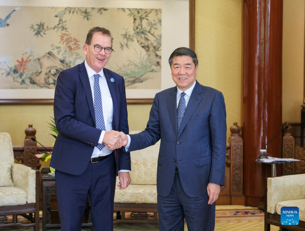 Chinese Vice Premier He Lifeng, also a member of the Political Bureau of the Communist Party of China Central Committee, meets with Director General of the United Nations Industrial Development Organization (UNIDO) Gerd Muller, who attended the third Belt and Road Forum for International Cooperation, in Beijing, capital of China, Oct. 19, 2023. (Xinhua/Ding Lin)