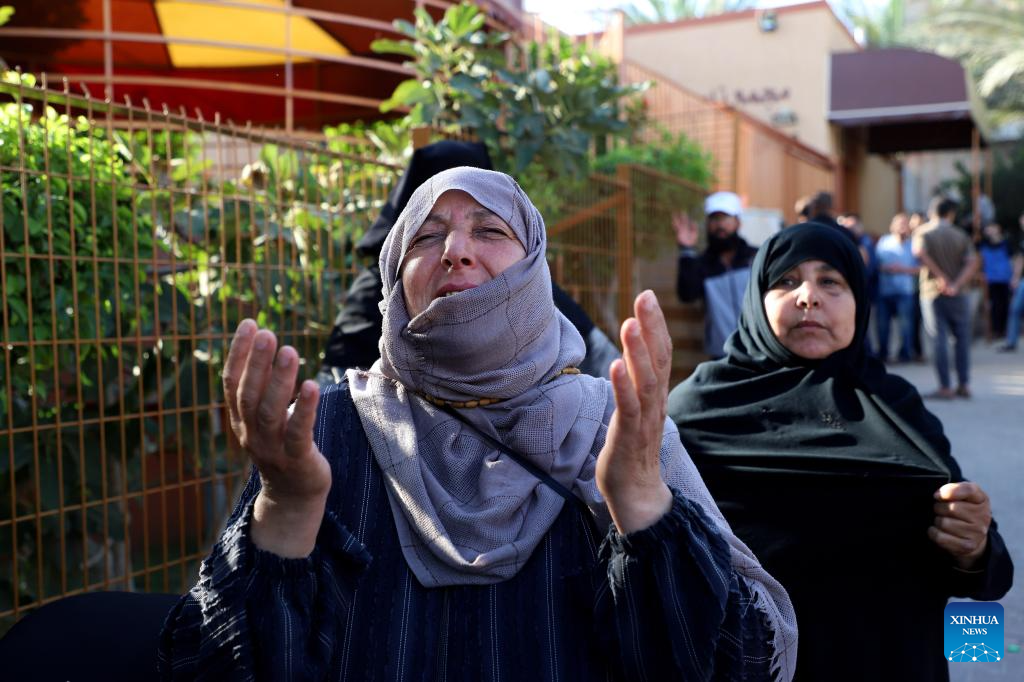 People mourn the death of their relatives at a hospital in the southern Gaza Strip, Oct. 20, 2023. The number of Palestinian fatalities has exceeded 3,785, with over 13,000 individuals sustaining injuries since Oct. 7, said the health ministry in Gaza on Thursday. (Photo by Rizek Abdeljawad/Xinhua)
