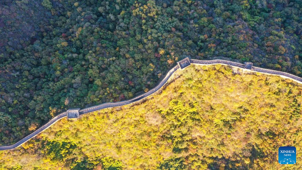 This photo taken on Oct. 21, 2023 shows the autumn scenery of the Mutianyu section of the Great Wall in Beijing, capital of China. (Xinhua/Chen Yehua)
