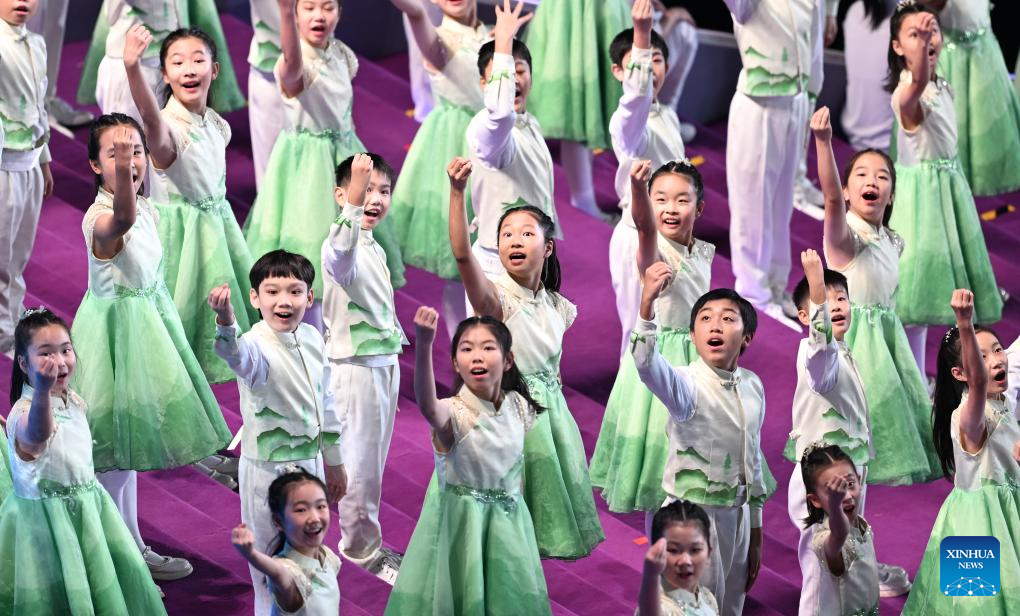 Children perform during the opening ceremony of the 4th Asian Para Games in Hangzhou of east China's Zhejiang Province, on Oct. 22, 2023. (Xinhua/Bei He)