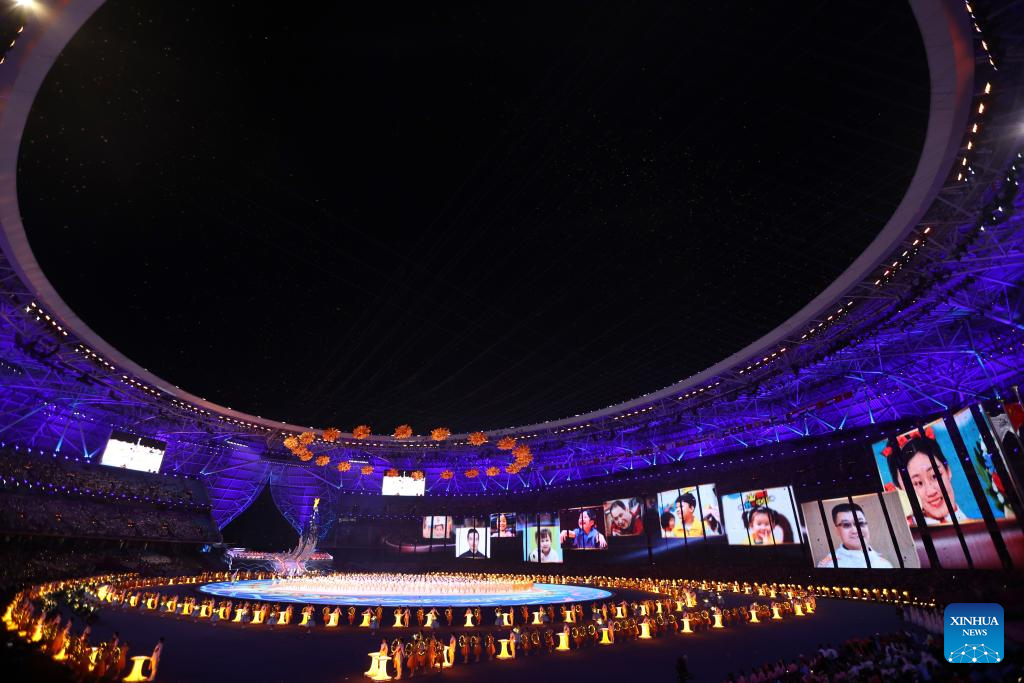 This photo taken on Oct. 22, 2023 shows the opening ceremony of the 4th Asian Para Games in Hangzhou of east China's Zhejiang Province. (Xinhua/Bei He)