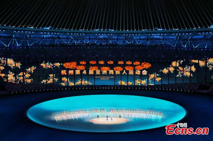 Artists perform during the opening ceremony of the 4th Asian Para Games in Hangzhou of east China's Zhejiang Province, on Oct. 22, 2023. (Photo: China News Service/Yu Dong)