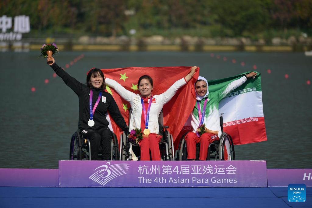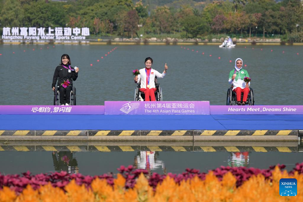 HANGZHOU, Oct. 23 (Xinhua) -- China's canoeist Xie Maosan claimed the first gold medal of the Hangzhou Asian Para Games on Monday when she won the women's KL1 canoe final in 55.478 seconds.