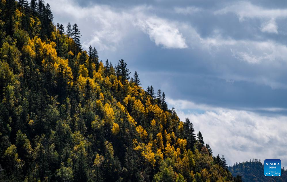 This photo shows autumn scenery of Hongla Mountain in Mangkam County, Qamdo, southwest China's Tibet Autonomous Region, Oct. 20, 2023. (Xinhua/Sun Fei)