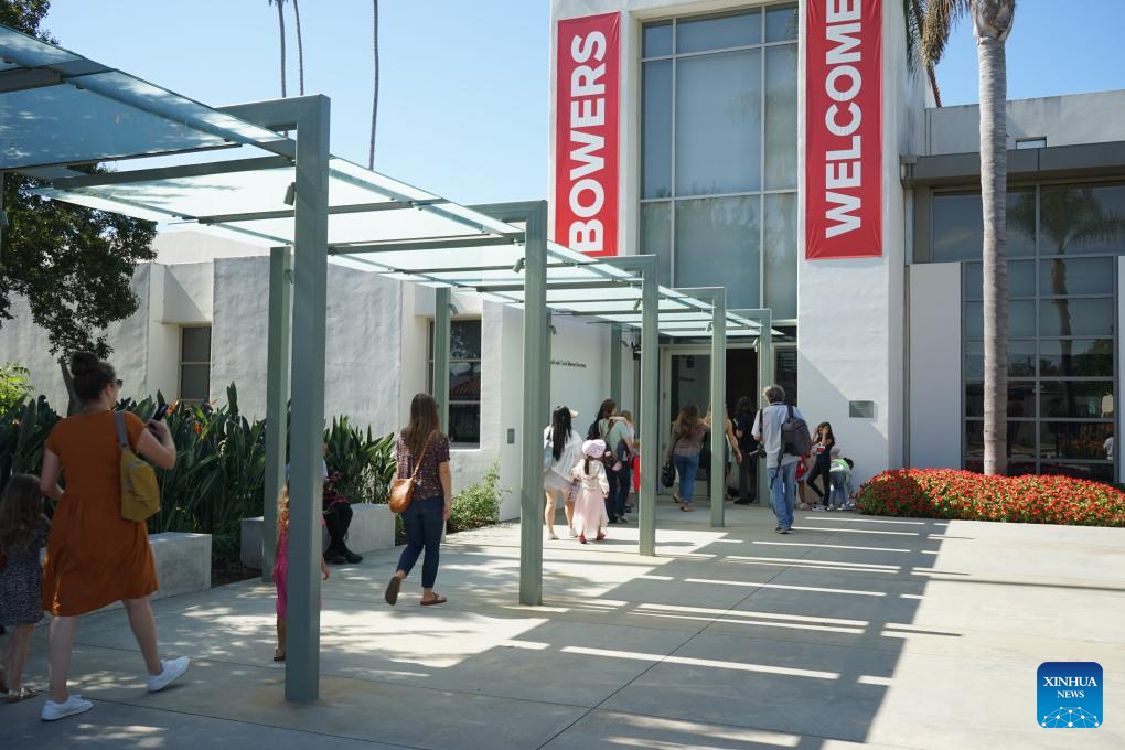 People visit Bowers Museum in Orange County, Southern California, the United States, on Oct. 20, 2023. Bowers Museum, a premier cultural art museum in Southern California, expects to further strengthen cultural links with China and serve as a bridge for boosting U.S.-China understanding, the museum's new President and CEO, Dr. Seán O'Harrow, told Xinhua in a recent interview. (Photo by Zeng Hui/Xinhua)