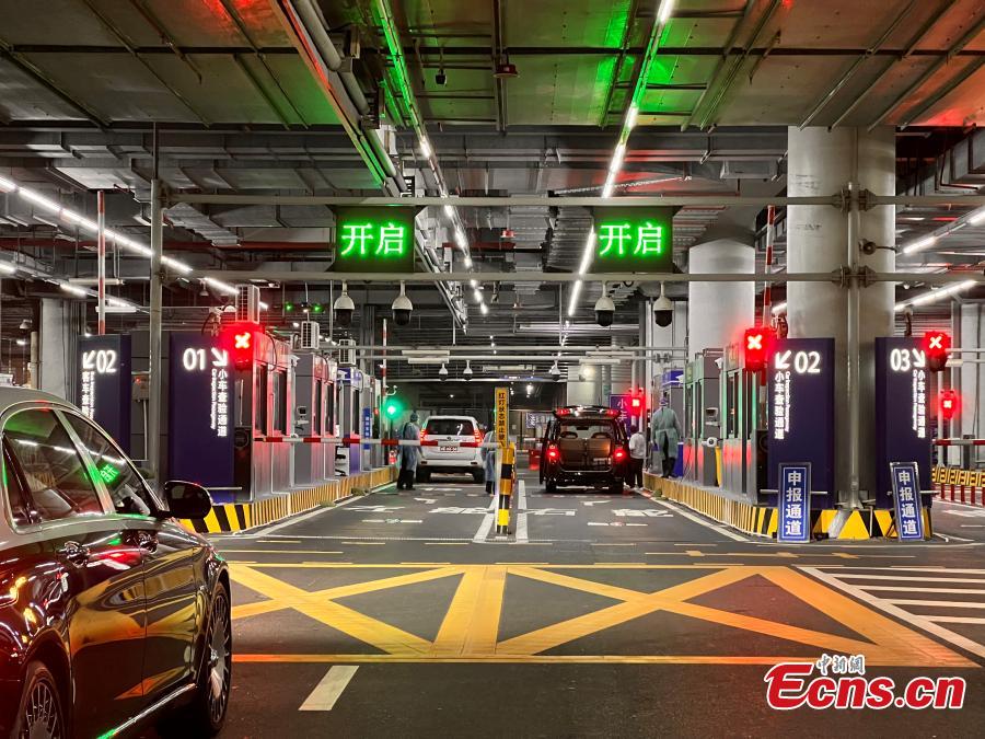 Macao private cars queue for inspection at the Zhuhai port of the Hong Kong-Zhuhai-Macao Bridge in south China's, Jan. 1, 2023. A total of 8 private cars entered Guangdong Province via the Hong Kong-Zhuhai-Macao Bridge. (Photo: China News Service/Zhang Ziheng)