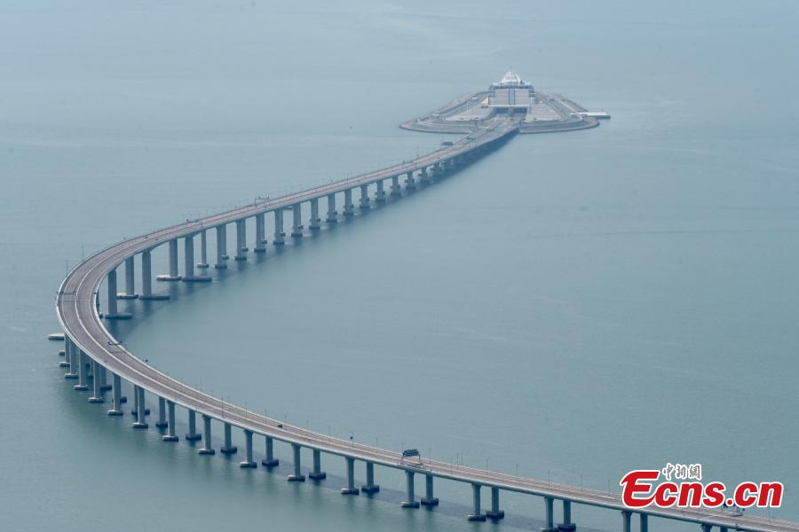 Officially opened to traffic on Oct. 24, 2018, the 55-km Hong Kong-Zhuhai-Macao Bridge links China's Hong Kong Special Administrative Region, the city of Zhuhai of southern Guangdong Province and Macao SAR. The bridge created a one-hour living circle in the Pearl River Delta region, which has boosted the Greater Bay Area’s economic development.