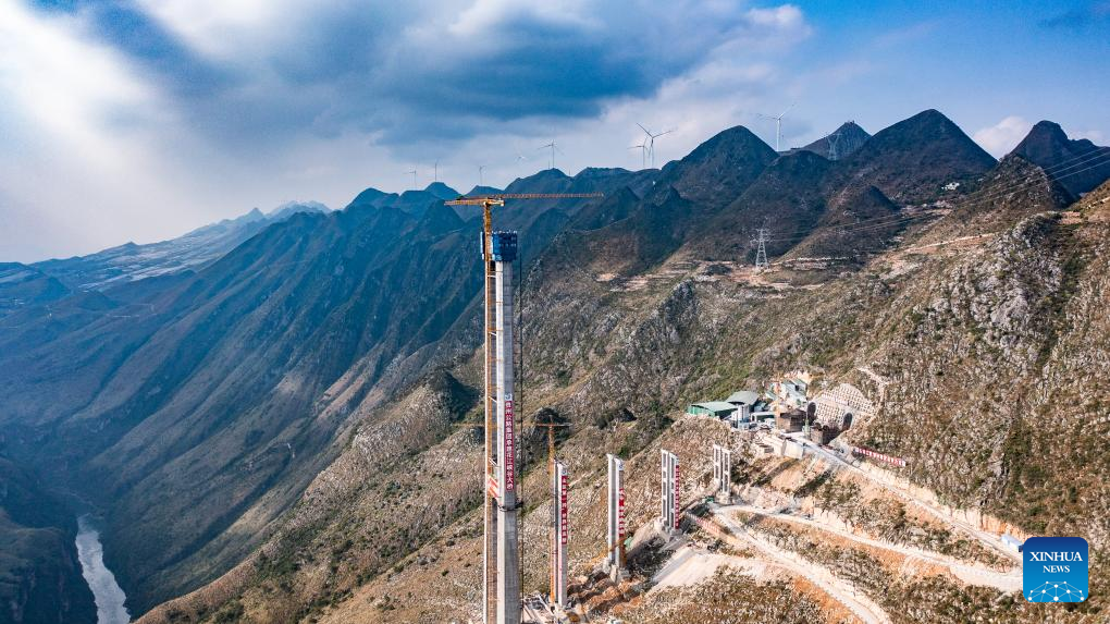 The 2,890-meter-long bridge is located in Bouyei-Miao Autonomous County of Guanling and is part of an expressway linking the Liuzhi special district of Liupanshui City and Anlong County of Bouyei-Miao Autonomous Prefecture of Qianxinan, Guizhou Province.
