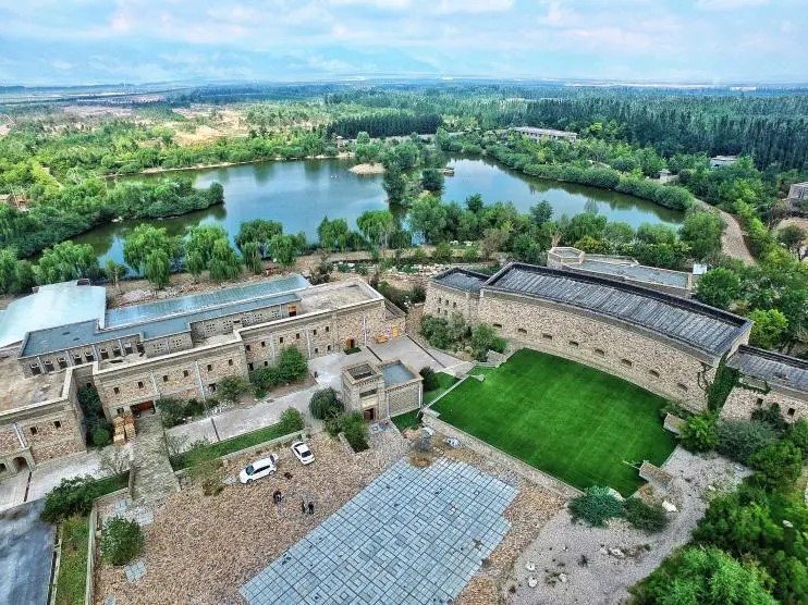 The main building, constructed using nearly 200,000 stones from Helan Mountain, is round on the outside and square within, reflecting a deep reverence for nature and encapsulating ancient Chinese philosophy.