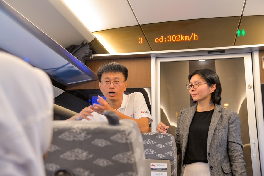 "After the commercial operation started last week, I finally had the opportunity to ride the high-speed train. During the free ride phase, my parents tried in vain to get a ticket for me," said Rayi, 14, another 9th grader. "I learned a lot about HSR today in the class and on the train, and I can't wait to be a business person in the future to travel by the high-speed train."
