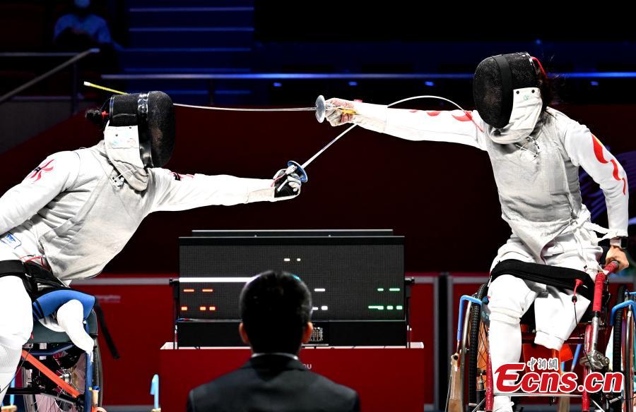 Players compete during the Women's Foil Team Final at the 4th Asian Para Games in Hangzhou, east China's Zhejiang Province, Oct. 24, 2023. (Photo: China News Service/Lv Ming)