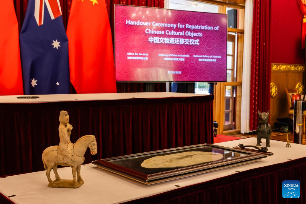 CANBERRA, Oct. 25 (Xinhua) -- A handover ceremony for the repatriation of Chinese cultural objects was held Wednesday in Australian capital Canberra.