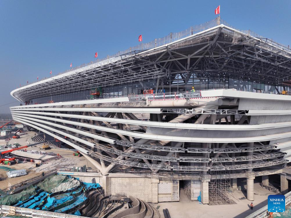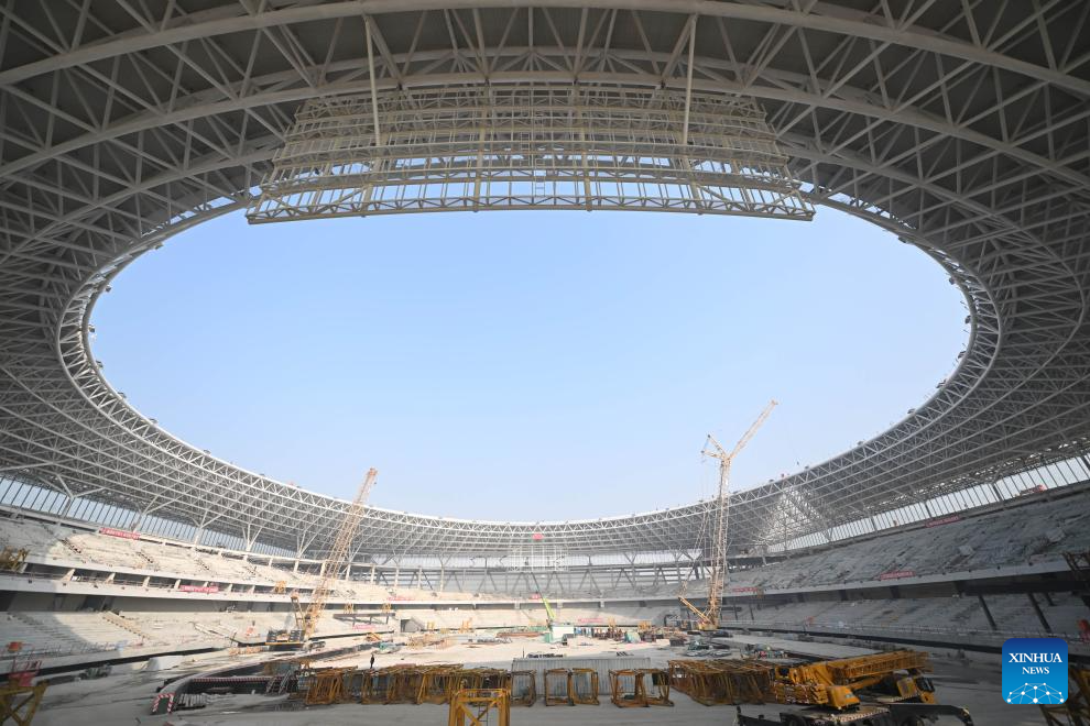 This aerial photo taken on Oct. 24, 2023 shows the construction site of the stadium of the Xiong'an sports center in Xiong'an New Area, north China's Hebei Province.