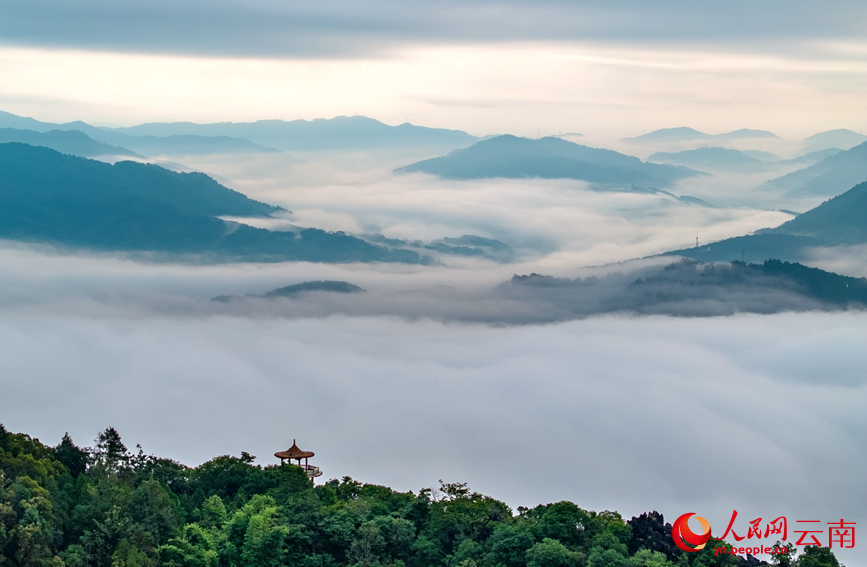Photo shows a magnificent autumn view of a sea of clouds in Pu'er mountain in Ning'er Hani and Yi Autonomous County, Pu'er city, southwest China's Yunnan Province. (Photo/Rao Xuesong)