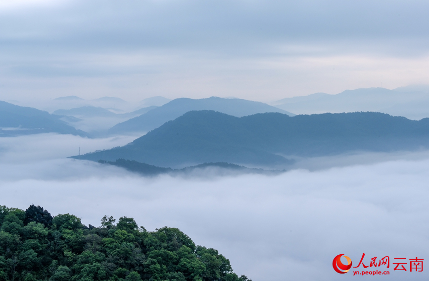 Photo shows a spectacular autumn view of a sea of clouds in Pu'er mountain in Ning'er Hani and Yi Autonomous County, Pu'er city, southwest China's Yunnan Province. (Photo/Rao Xuesong)