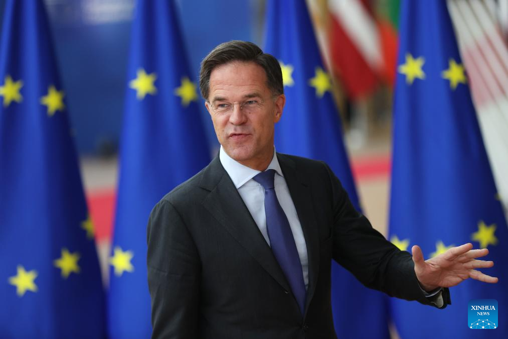 Dutch Prime Minister Mark Rutte arrives for the EU summit in Brussels, Belgium, on Oct. 26, 2023. European Union (EU) leaders meet here on Thursday and Friday in a planned European Council summit, focusing on the conflicts between Israel and Hamas and between Ukraine and Russia. (Xinhua/Zhao Dingzhe)