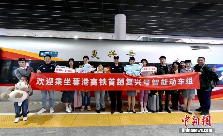 The Chengdu-Hong Kong high-speed rail route is upgraded with new CR400AF-Z Fuxing intelligent trains. The CR400AF-Z Fuxing intelligent train runs at a maximum operating speed of 350 kilometers per hour and can accommodate up to 578 passengers.
