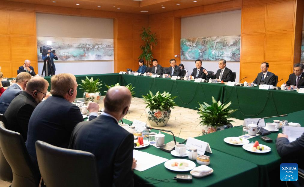Wang Yi, a member of the Political Bureau of the Communist Party of China Central Committee and Chinese foreign minister, speaks during a meeting with representatives of U.S. business community and other sectors in Washington, D.C., the United States, Oct. 28, 2023. (Xinhua/Liu Jie)
