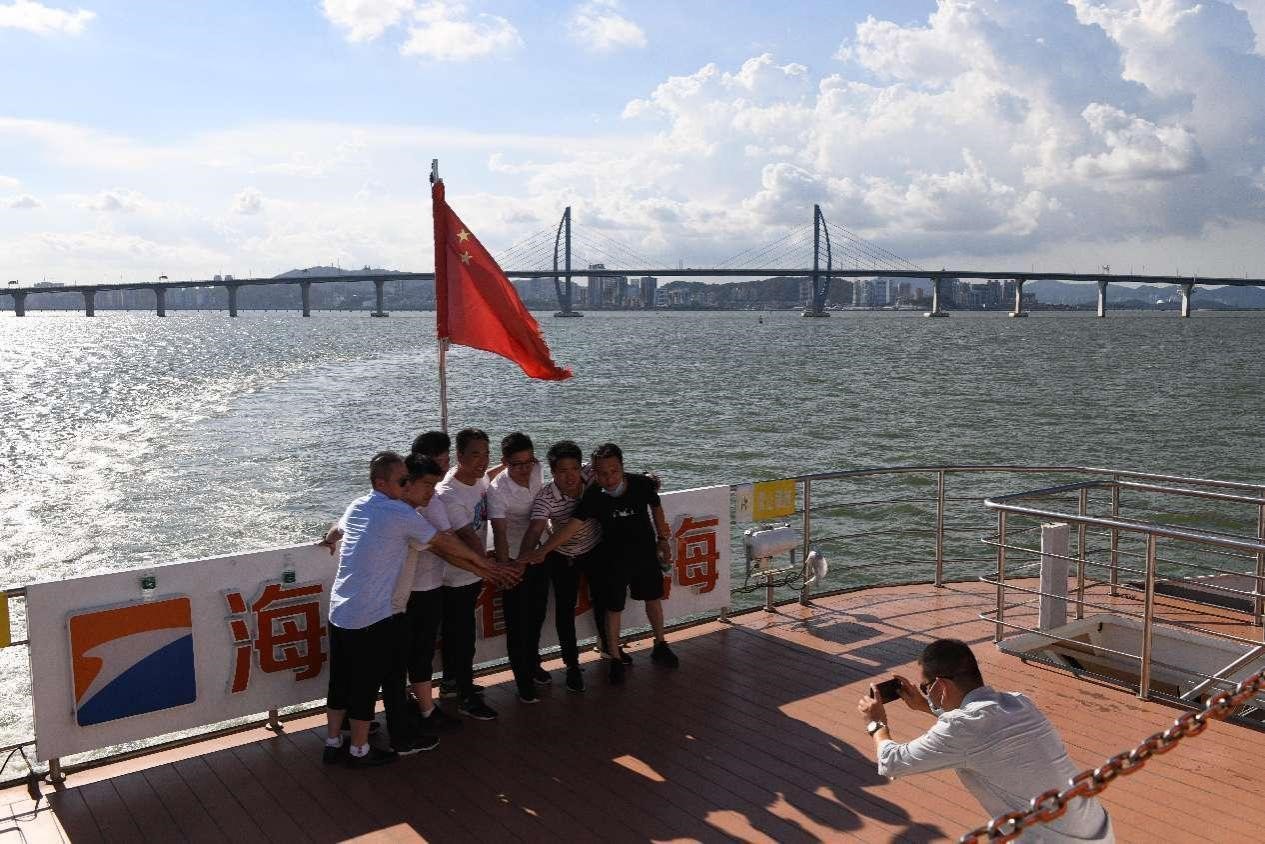 During the eight-day Mid-Autumn Festival and National Day holiday this year, Huang crossed the bridge with his family and had a wonderful time touring the Zhuhai countryside, soaking in the hot springs in Jiangmen, and shopping for souvenirs in Macao.