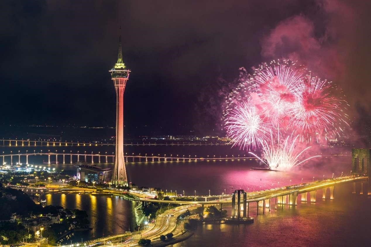 A firework display is staged in Macao, Oct. 1, 2023. (People's Daily Online/Deng Guohui)