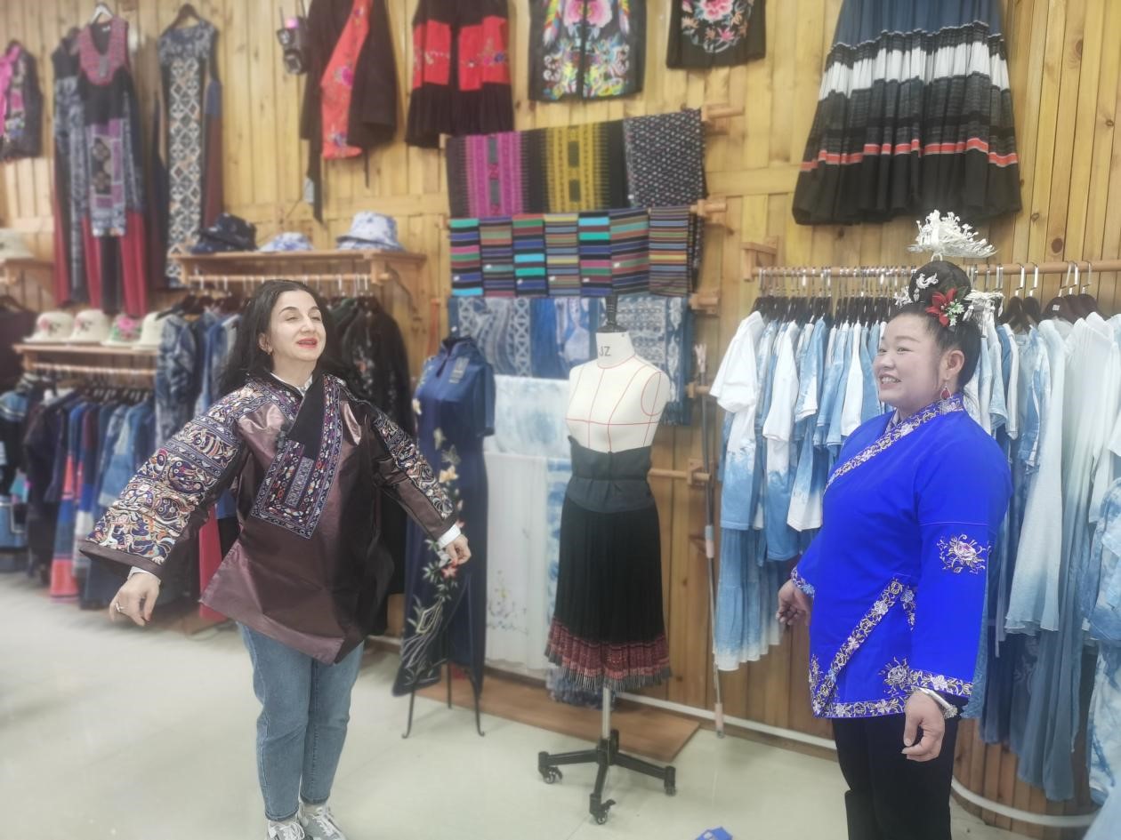 The Miao community is renowned for its embroidery and silver accessories. Georgian journalist Catherine Gulua and Kazakhstani journalist Arsen Nurtazin tried traditional Miao attire, sharing their experiences through videos on social media. The journalists also toured a silversmith's workshop to learn how to make silver jewelry.
