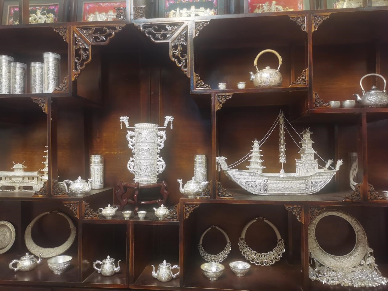 Photo taken on Oct. 28, 2023, shows silver handicrafts in Shidong town, Taijiang county, southwest China's Guizhou Province. (People's Daily Online/Zhang Kaiwei)
