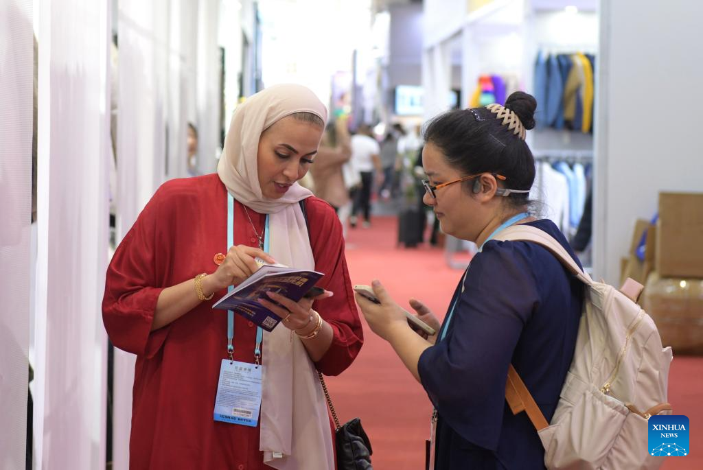 A foreign buyer visits a clothing booth during the third phase of the 134th Canton Fair in Guangzhou, south China's Guangdong Province, Oct. 31, 2023. The third phase of the 134th session of the China Import and Export Fair, also known as the Canton Fair, opened here on Tuesday and will last till Nov. 4. The event covers a total exhibition area of 515,000 square meters. (Xinhua/Deng Hua)