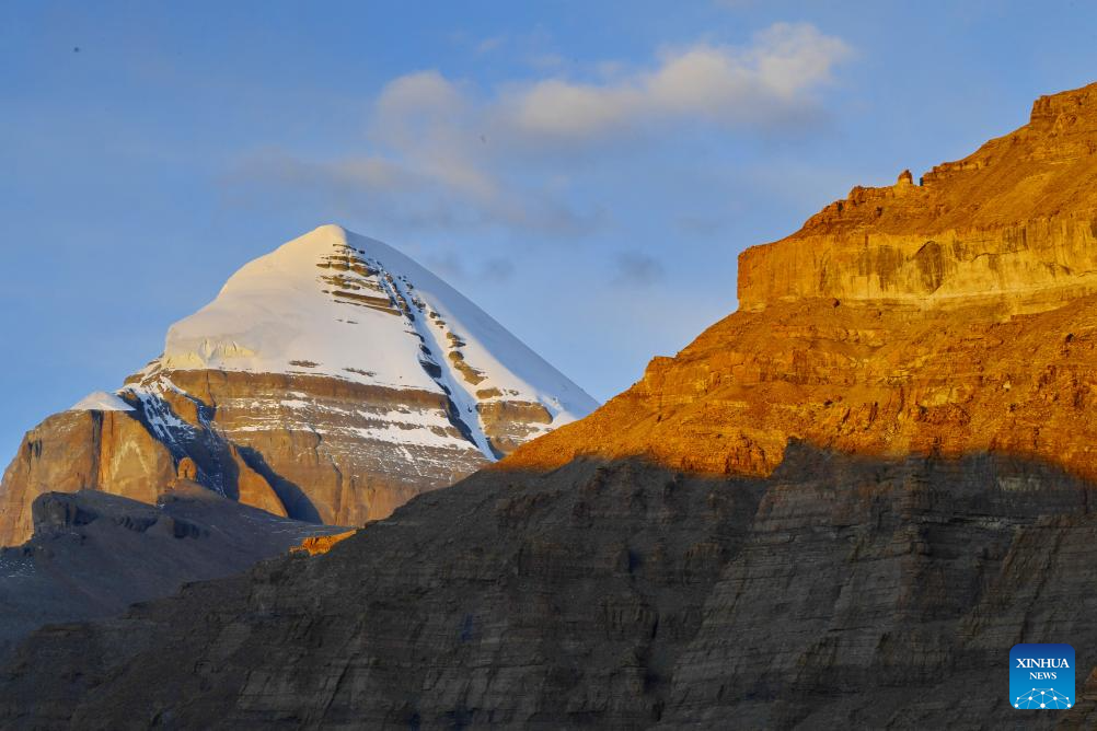 This photo taken on Oct. 29, 2023 shows the scenery of Mount Kangrinboqe in Burang County of Ngari Prefecture, southwest China's Tibet Autonomous Region. (Xinhua/Zhang Rufeng)