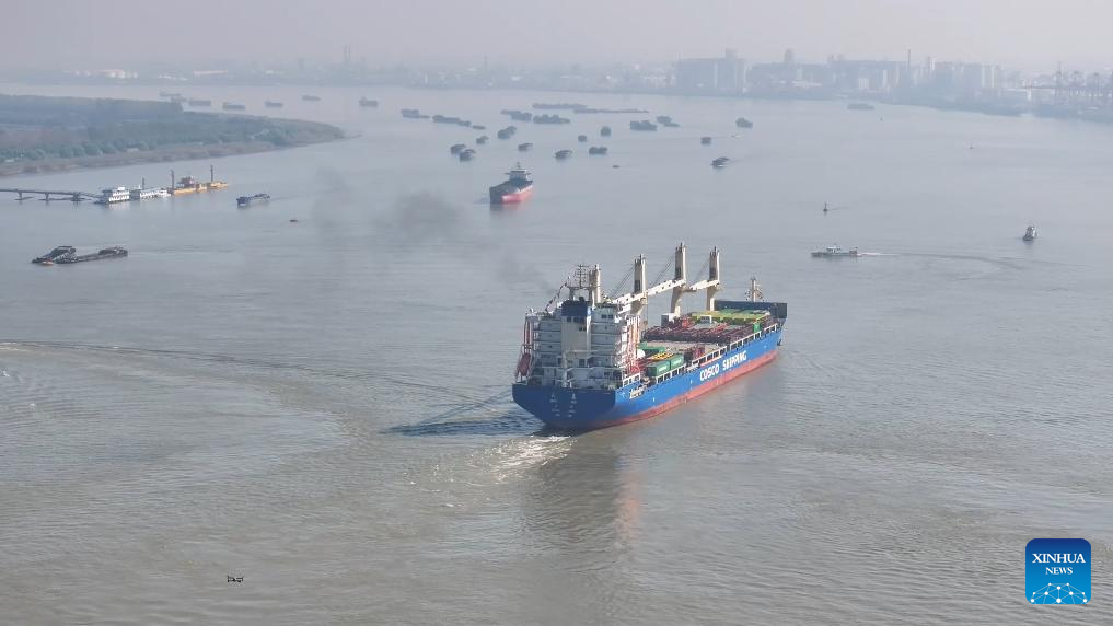 Cargo vessel Tian Hui sets off from Zhangjiagang, east China's Jiangsu Province, Nov. 1, 2023. (Photo by He Haiyang/Xinhua)