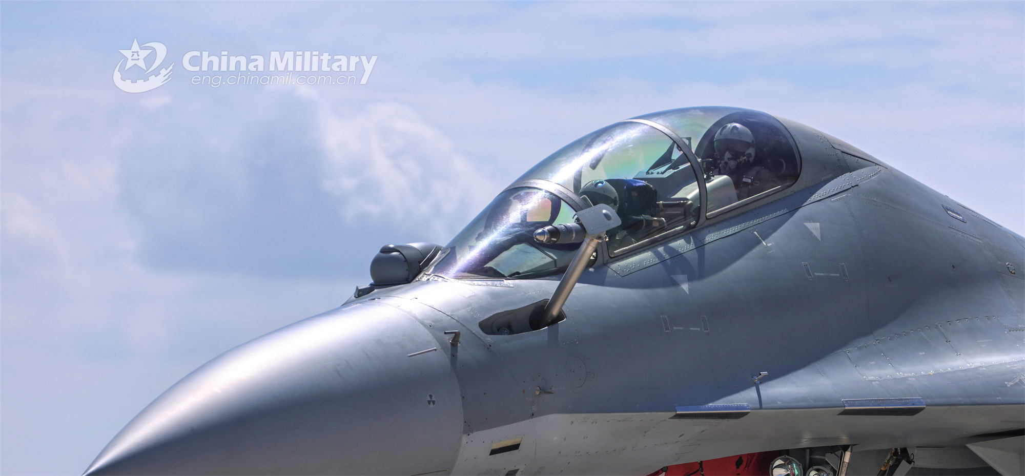 Pilots assigned to an aviation brigade with the air force under the PLA Southern Theater Command taxi a fighter jet on the flightline after completing an aerial refueling training exercise in mid October, 2023. (eng.chinamil.com.cn/Photo by Hao Hunan)