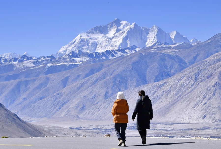 Tourists visit Mount Qomolangma National Park in southwest China's Tibet Autonomous Region, Oct. 27, 2023. (Xinhua/Zhang Rufeng)