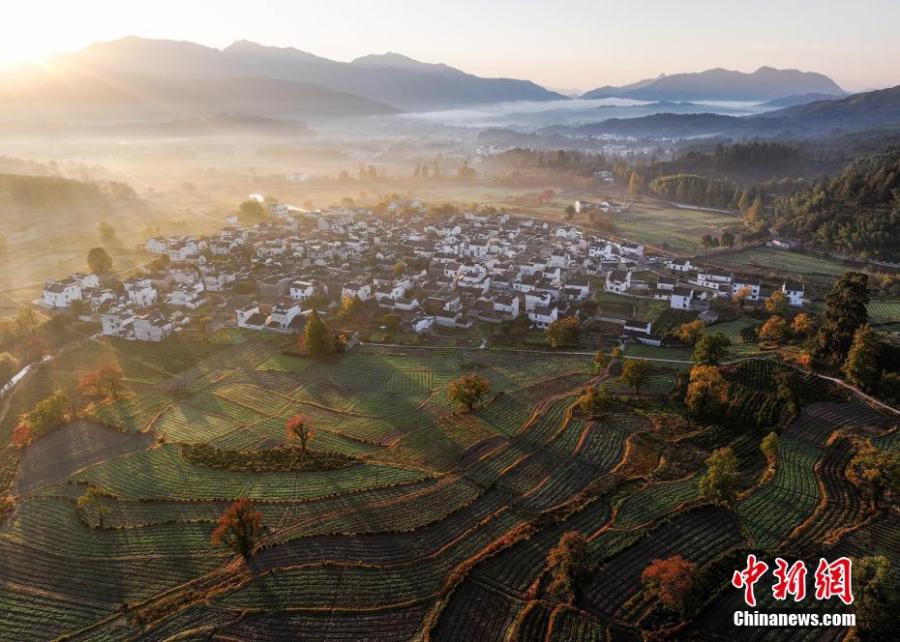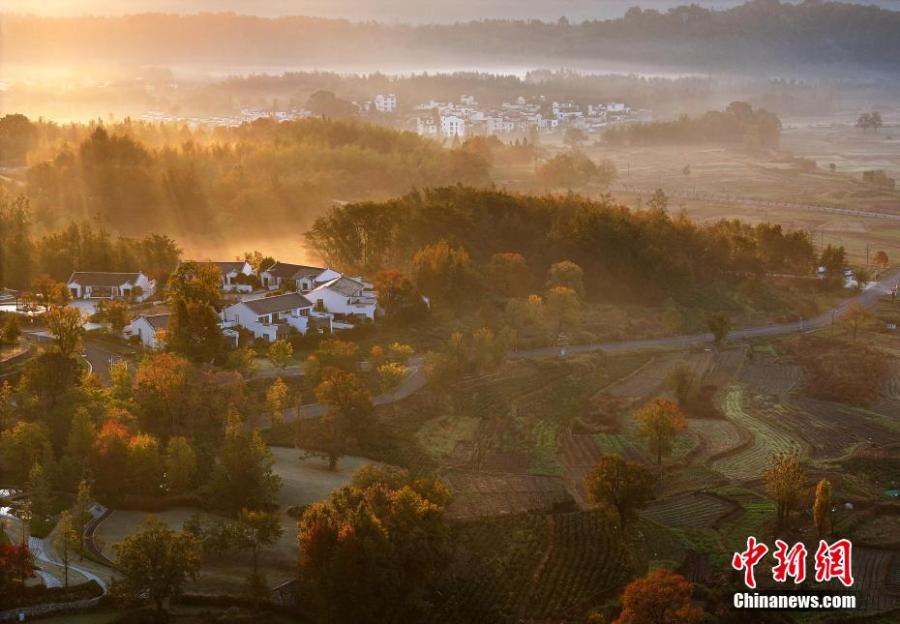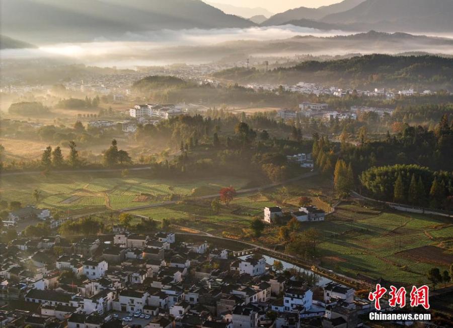 Yixian County is hidden in morning mist, creating an oil-painting-like scenery in Huangshan City, east China's Anhui Province, Nov. 1, 2023. (Photo: China News Service/Shi Yalei)