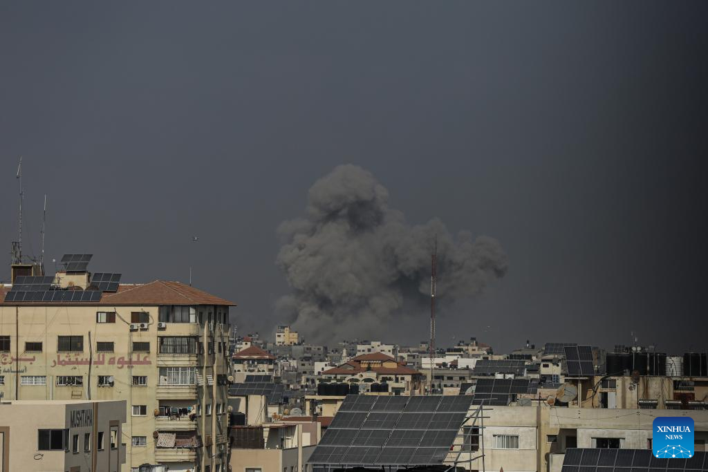 Smoke rises following an Israeli airstrike in Gaza City, on Nov. 2, 2023. The Israel-Hamas conflict, raging for nearly a month, has led to the deaths of more than 9,000 Palestinians in Gaza. On the Israeli side, more than 1,400 people lost their lives, the vast majority in the Hamas attack on Oct. 7, which triggered the latest conflict. (Xinhua)