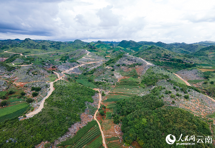 The hills in the Zhuangzitian village group, similar to other areas in the prefecture, showcase a characteristic karst rocky desertification landscape. In this region, over 80 percent of the land is affected by rocky desertification.