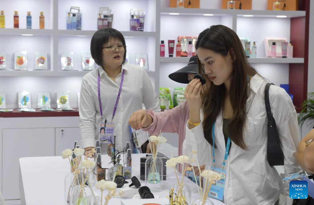 Visitors select goods during the 134th Canton Fair in Guangzhou, south China's Guangdong Province, Nov. 4, 2023. The 134th session of the China Import and Export Fair, also known as the Canton Fair, closed here on Saturday. (Xinhua/Lu Hanxin)