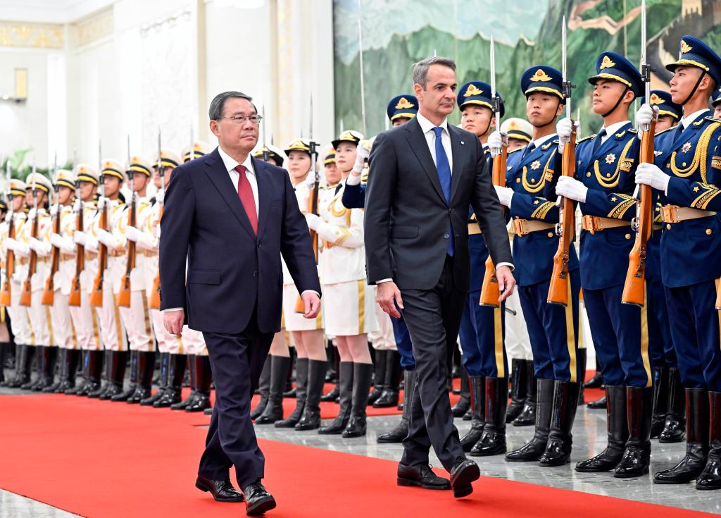 Prior to the talks, Li held a welcoming ceremony for Mitsotakis.