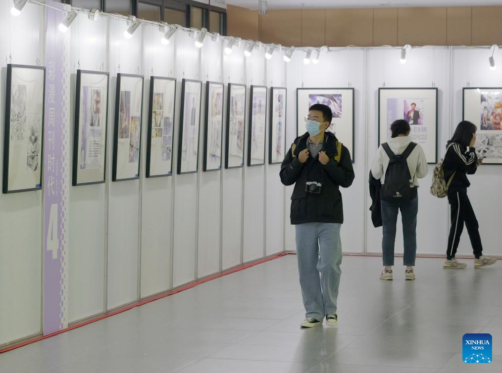Comic enthusiasts visit an exhibition during the 19th World Comic Conference in Anyang, central China's Henan Province, Nov. 4, 2023. The five-day 19th World Comic Conference kicked off here on Saturday with 2,931 comic works from 29 countries and regions on display. (Xinhua/Li Jianan)