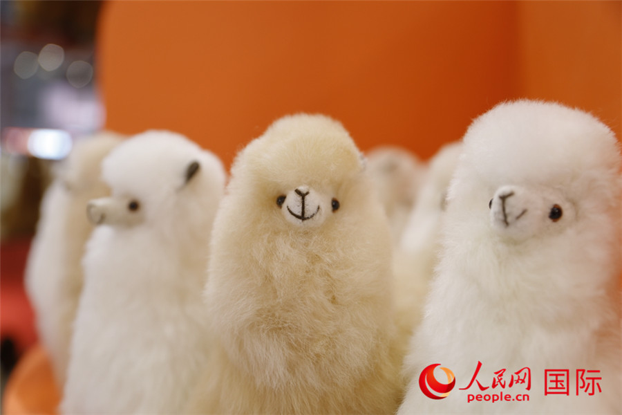 Photo from Nov. 5 displays alpaca plush toys in the consumer goods section of the 6th China International Import Expo in Shanghai. (People's Daily Online/Li Meiyu)