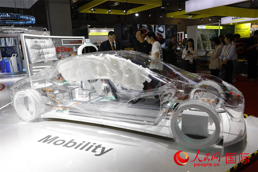 Photo taken on Nov. 5 shows a concept car model demonstrating the application of low-carbon, environmentally friendly silicone at the 6th China International Import Expo in Shanghai. (People's Daily Online/Li Meiyu)