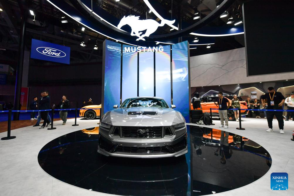 A hybird sports car is exhibited at the automobile exhibition area of the 6th China International Import Expo (CIIE) in east China's Shanghai, Nov. 6, 2023. (Xinhua/Meng Tao)