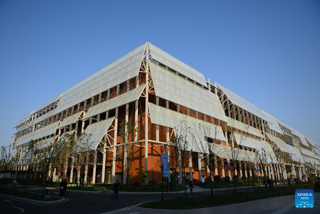 This photo taken on Nov. 7, 2023 shows an exterior view of the World Internet Science and Technology Museum in Wuzhen, east China's Zhejiang Province. (Xinhua/Huang Zongzhi)