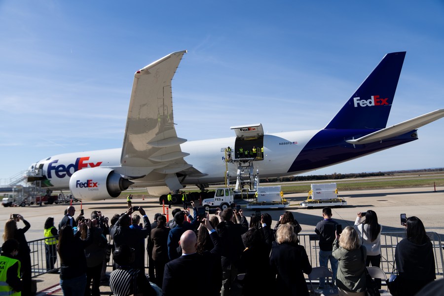 A FedEx Express Boeing 777 Freighter with a huge giant panda picture painted outside the cockpit was parked with its cargo cabin gate open, ready to load the pandas onboard and carry out the transport mission. FedEx had flown similar missions for other pandas in the United States that went back to China.