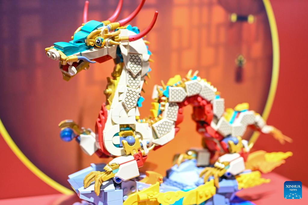 This photo taken on Nov. 6, 2023 shows a LEGO toy set featuring the "Auspicious Chinese Dragon" image, debuted at the sixth China International Import Expo (CIIE) in Shanghai, east China.?(Xinhua/Zhang Keren)