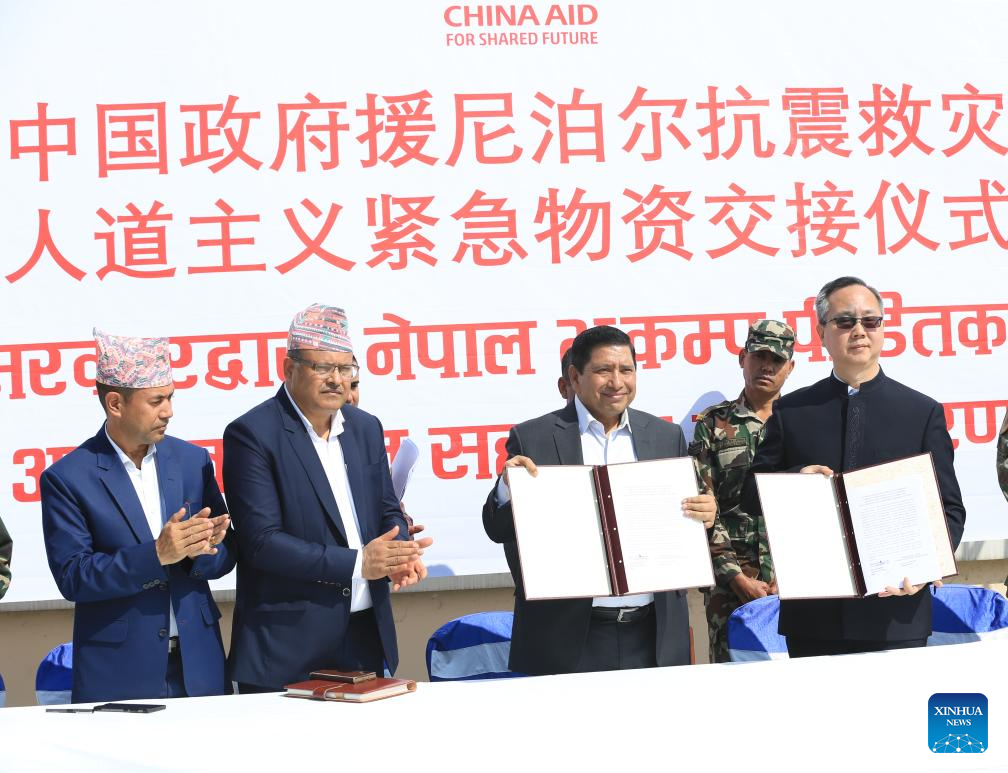The relief materials epitomize China-Nepal's connection by mountains and rivers and bond of mutual assistance and symbolizes China's commitment to building a community with a shared future for mankind, Chen said at the handover ceremony.