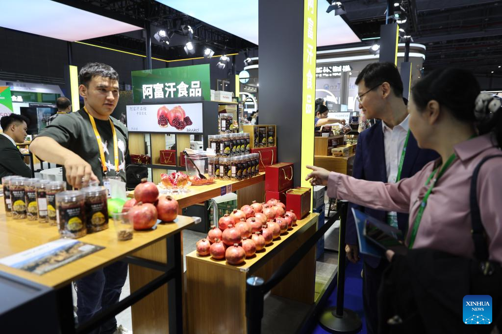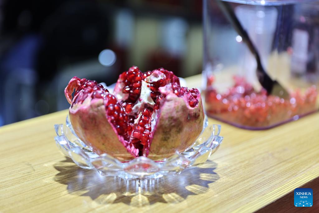 An Afghan pomegranate is displayed at the 6th China International Import Expo (CIIE) in east China's Shanghai, Nov. 6, 2023. (Xinhua/Wang Xiang)