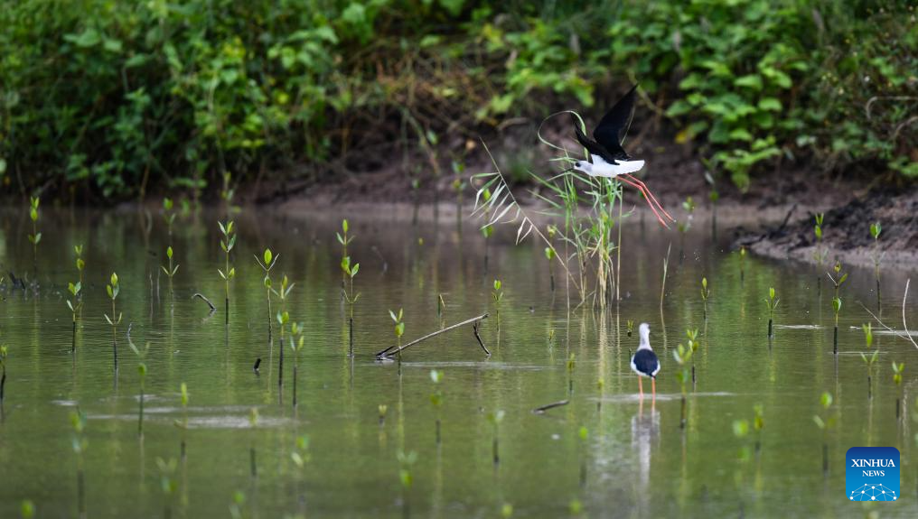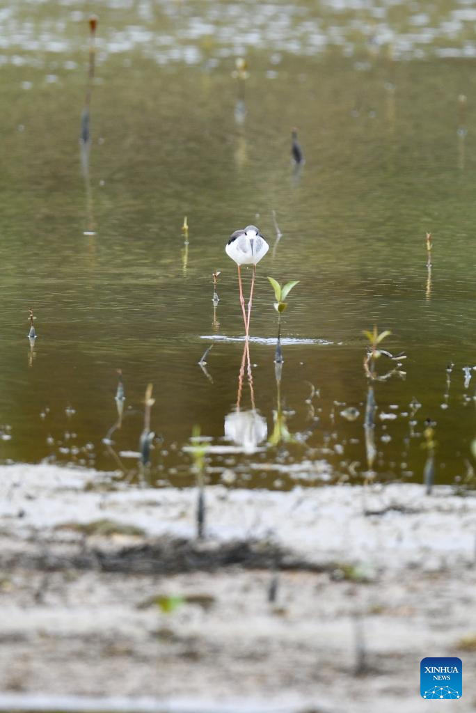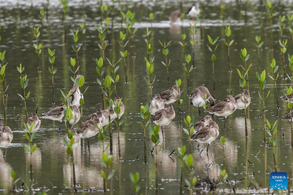 Migratory birds are seen at Dongzhai Port Nature Reserve in Haikou, south China's Hainan Province, Nov. 8, 2023. The place is known for its mangrove forest, which provides a habitat for birds and other wild animals. (Xinhua/Yang Guanyu)