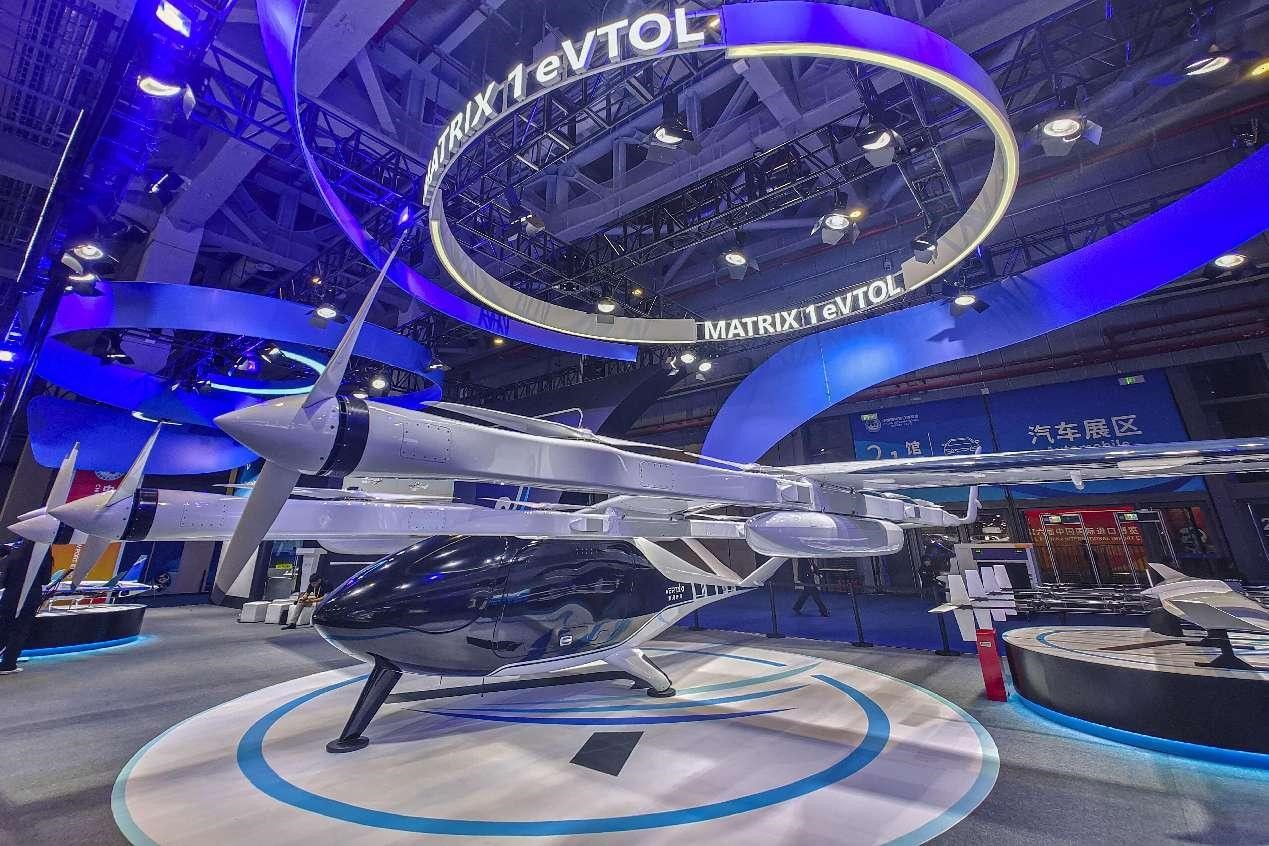 A 2-ton electric vertical takeoff and landing drone is exhibited at the sixth China International Import Expo, Nov. 5, 2023. (People's Daily Online/Wang Chu)