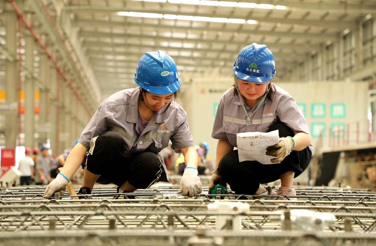 Workers work in a workshop of a construction technology company in Wangyang township, Meishan, southwest China's Sichuan province. (People's Daily Online/Pan Shuai)