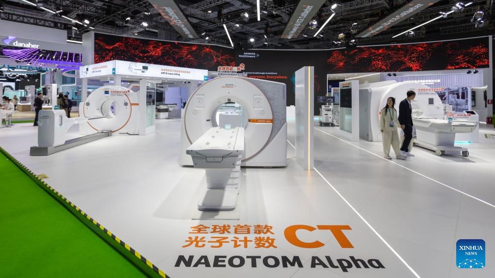 This photo taken on Nov. 8, 2023 shows a booth of Medtronic at the 6th China International Import Expo (CIIE) in east China's Shanghai. (Xinhua/Wang Xiang)