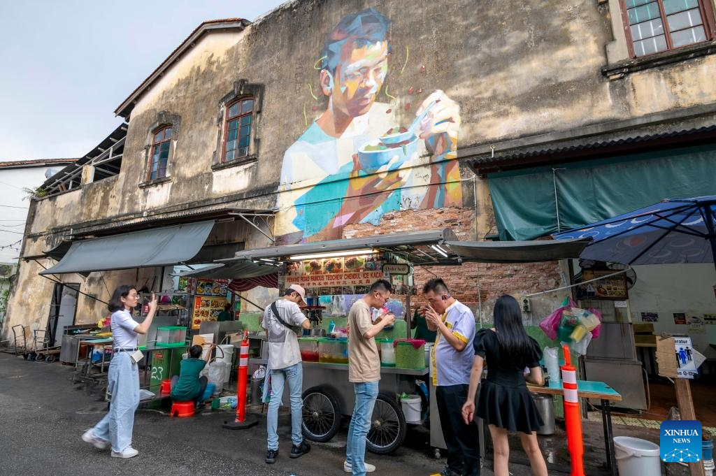 People take photos by a street in Penang, Malaysia, Nov. 9, 2023. (Photo by Chong Voon Chung/Xinhua)